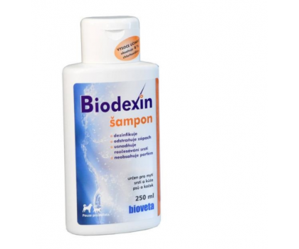 BIODEXIN šampón s chlorhexidinom je určený pre umývanie srsti a kože u psov a mačiek v prípade potreby antiseptického, čistiaceho a dezodoračného účinku.