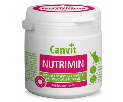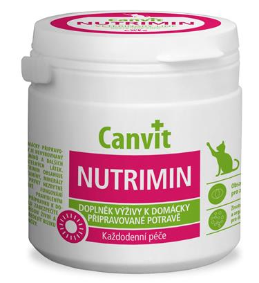 Rizikom domácky pripravenej stravy je nevyrovnaný obsah vitamínov a ďalších dôležitých látok. Canvit Nutrimin obsahuje všetky vitamíny, minerály a stopové prvky potrebné pre zdravé fungovanie organizmu. Pravidelným podávaním prípravku k domácemu jedlu, zabezpečíte bezpečný prísun živín a pomôžete predísť riziku hypovitaminózy. Obsahuje taurín pre zdravý zrak.