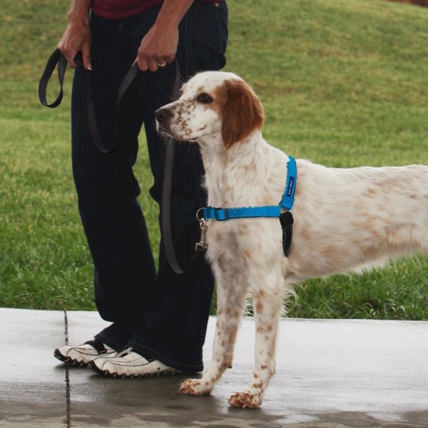 Easy Walk ™ Harness postroj je navrhnutý tak, aby jemne odradil psa od ťahania pri chôdzi na vodítku. Ak vás pes začne ťahať, jemne potiahnite vodítko na stranu a otočte psa smerom k sebe. Keď sa zastaví ťahom, uistite sa, aby ste uvoľnili tlak na vodítku. Použite chválu a odmeňte svojho psa odmenami a / alebo pochvalami. Ak chcete vášho psa spomaliť, keď ťahá dopredu, aplikujte mierny tlak na vodítko, a ťahajte jemne smerom na jednu stranu psa. Uvoľnite tlak na vodítku ak pes ide pekne po vašom boku.