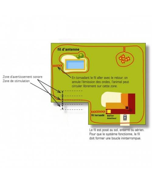 Systém pracuje na báze varovných signálov, ktoré psa upozornia ak prekročí Vami stanovené hranice. Vymedzená oblasť sa ohradí drôtom, ktorý môže byť zakopaný do zeme alebo upevnený na pevnom bode nad zemou. Vysielač v rámci tejto oblasti vysiela veľmi nízke frekvencie, ktoré sú zachytávané špeciálnym psím obojkom -prijímačom. Ak sa pes priblíži k určenej hranici, obojok vyšle varovný zvukový signál. Ak pes ďalej pokračuje k hranici, systém vyšle cez obojok bezbolestný ale napriek tomu nepríjemný statický signál, krorý psa odradí od postupu ďalej. Jednoduchým tréningom pomocou umiestnenia vztyčných vlajočiek po celom okruhu oblasti dokážete psa naučiť poslúchat varovné signály a zostať iba vo vyhradenej oblasti. Tréning trvá približne 1-2 týždne.