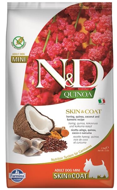 N&D DOG GF QUINOA SKIN&COAT ADULT MINI HERRING 2,5KG.