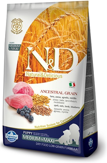 N&D DOG LG PUPPY MEDIUM & MAXI LAMB, SPELT, OATS & BLUEBERRY 12kg.