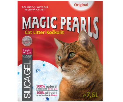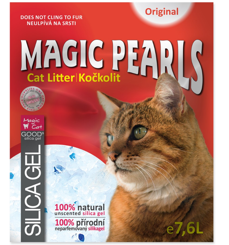 Moč sa absorbuje za niekoľko sekúnd a podstielka zostáva na dotyk suchá. Zápach nie je iba pohlcovaný, ale úplne eliminovaný.Tento proces tiež ničí baktérie. Bezkonkurenčne ekonomické 7,6 l balenie Magic Litter vydrží mačke dva mesiace. S inými podstielkami je potrebné použiť také množstvo štyrikrát. Pohltí všetky pachy a udrží ich vo vnútri. Podstielka Magic Pearls má špeciálnu veľkosť, tvar a zloženie a preto sa nezachytáva na srsť mačky a nie je vynášaná z nádoby. 100% bezprašná podstielka Magic Pearls je vytvorená zo silikagelu a je pre chovateľa aj pre zviera zdravšia. Väčšina podstielok obsahuje mnoho prachu, ktorý môže dráždiť oči a nosnú sliznicu.