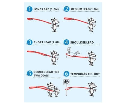 - Prepínacia vôdzka má dĺžku 2m a je ukončená masívnymi karabinami s jedinečným dizajnom na oboch koncoch.