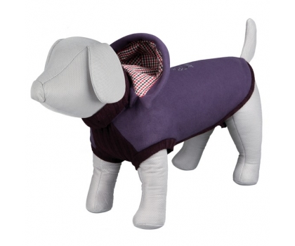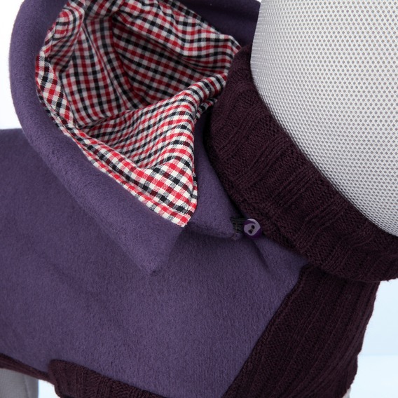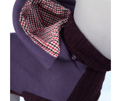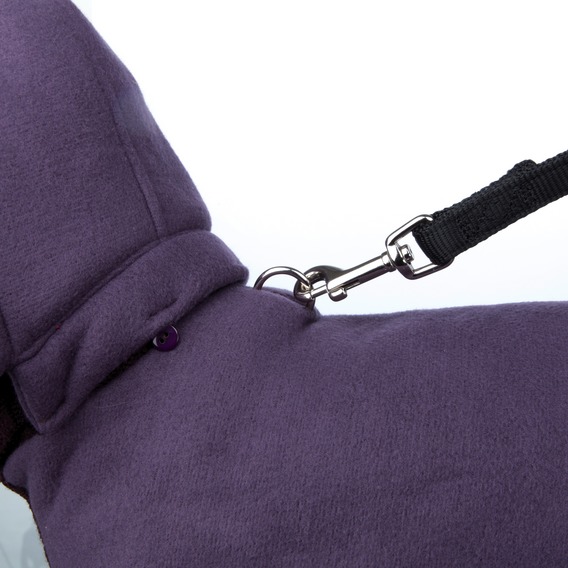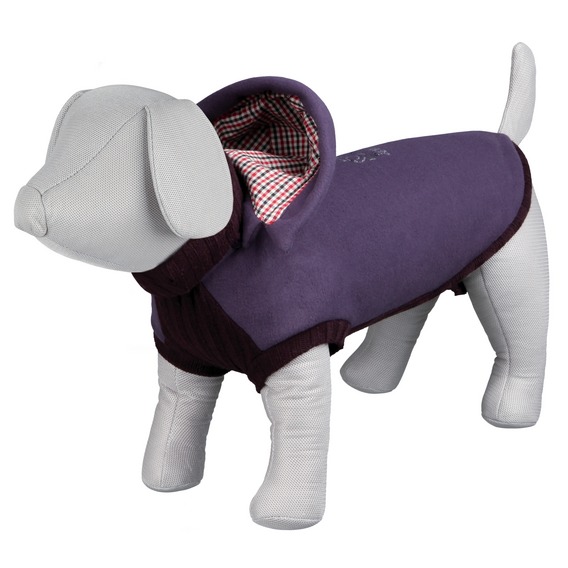 - Zateplený sveter z fleecu a syntetickej vlny s odnimateľnou kapucňou, rolovacím golierom, gumičkami na zadné nohy a praktickým otvorom pre jednoduché pripevnenie vodítka k obojku alebo postroju.