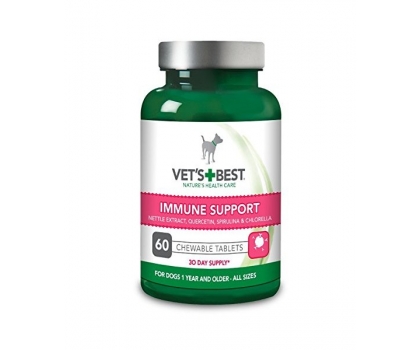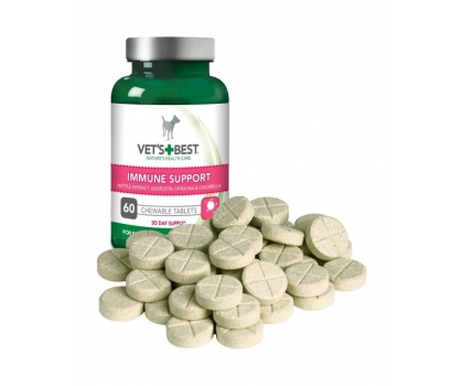 Vet's Best žuvacie tablety na podporu imunitného systému pre psov podporujú zdravý a aktívny imunitný systém, ktorý chráni pred nežiaducimi cudzími organizmami. Obsahujú tiež množstvo živín a protizápalových zložiek, ktoré napomáhajú celkovému blahu vášho psa. Zložky boli špeciálne vybrané pre ich charakteristické biologické vlastnosti. Obsahujú pivovarské droždie, spirulínu, kvercetín, vitamín C, citrusové bioflavonoidy a extrakt žihlavy (Urtica Doica)